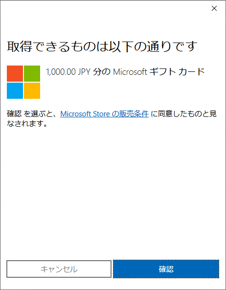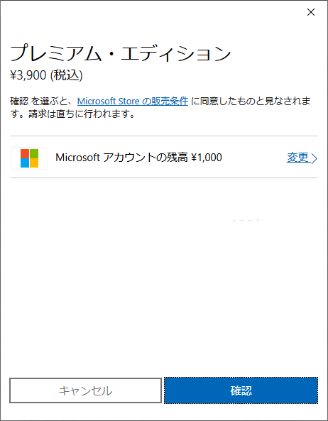 Microsoft アカウントの残高が 3,900 円以上になると 「確認」 ボタンを押して購入を確定することができます。