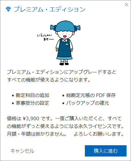 プレミアム ・ エディションの購入画面で 「購入に進む」 ボタンを押すと通常は下記のような画面が表示されます。